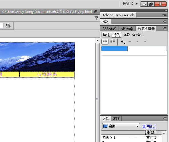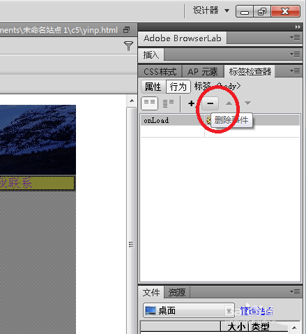 1、在上一篇制作的网页中,点击行为中的"-"号可以删除刚才添加的弹出信息窗口。