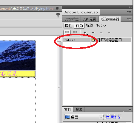 7、调整事件,选择事件为onload,即打开网页时打开,或者是onunload,即关闭网页时打开。