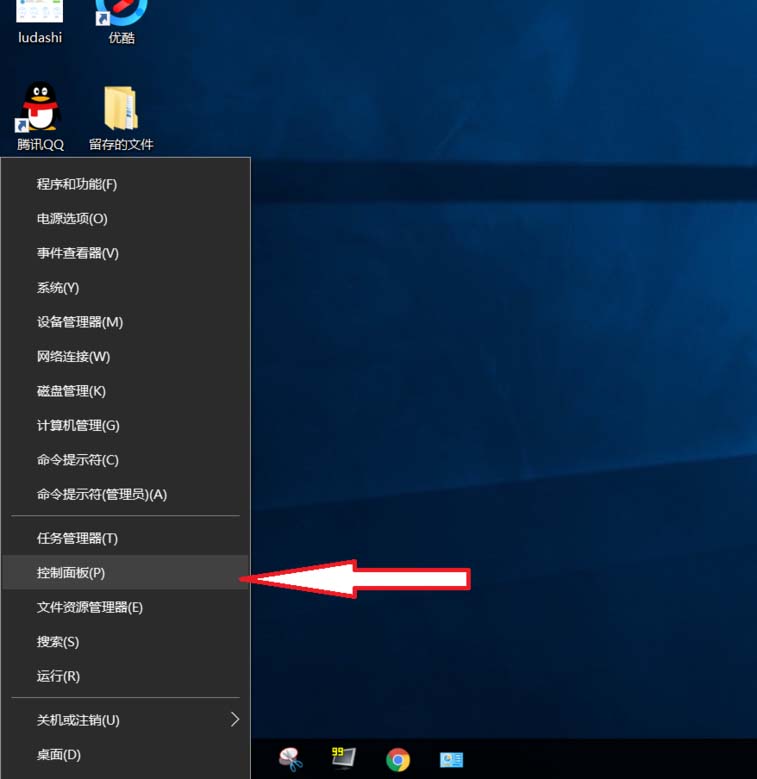 1、右击“开始”按钮找到“控制面板”;