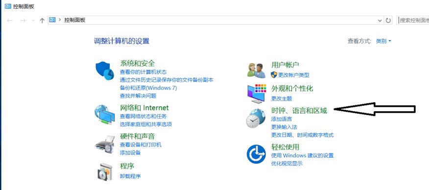 2、在控制面板打开“时钟、语言和区域”设置界面