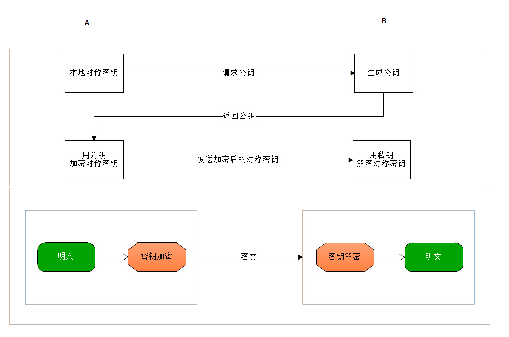 发送方将明文使用密钥和算法处理成密文发送出去,接收方使用密钥和算法将密文处理成明文,发收信双方使用同一个密钥对数据进行加密和解密。