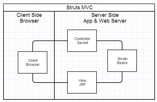 传统的MVC理念我们并不陌生,因为有Struts,所以在Web领域也有比较经典的MVC架构,这里面的V,就负责了整个前端的渲染,而且是服务端的渲染,也就是输出HTML。如下图所示: