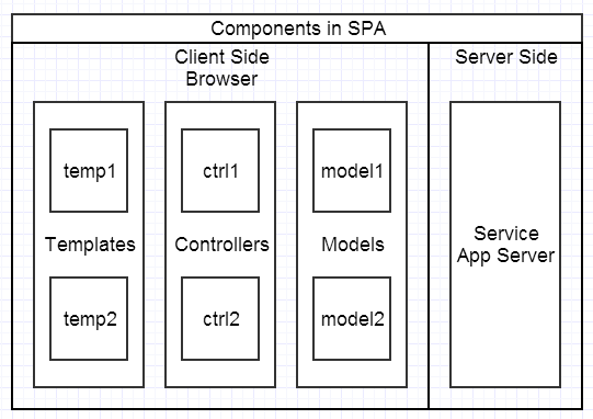 在SPA时代,这已经不合适了,所以浏览器端形成了自己的MVC等层次,这里的V已经变成客户端渲染了,通常会使用一些客户端的HTML模版去实现,而模型和控制器,也相应地在浏览器端形成了。