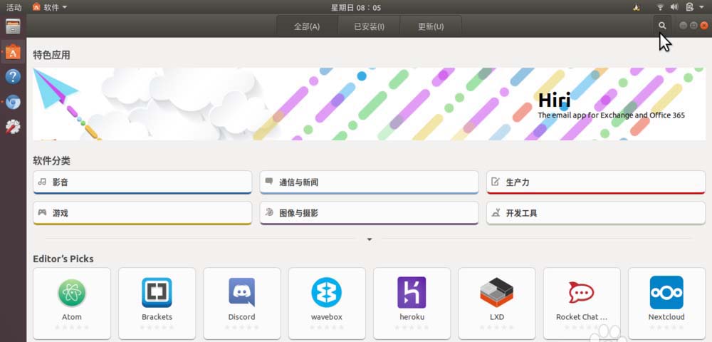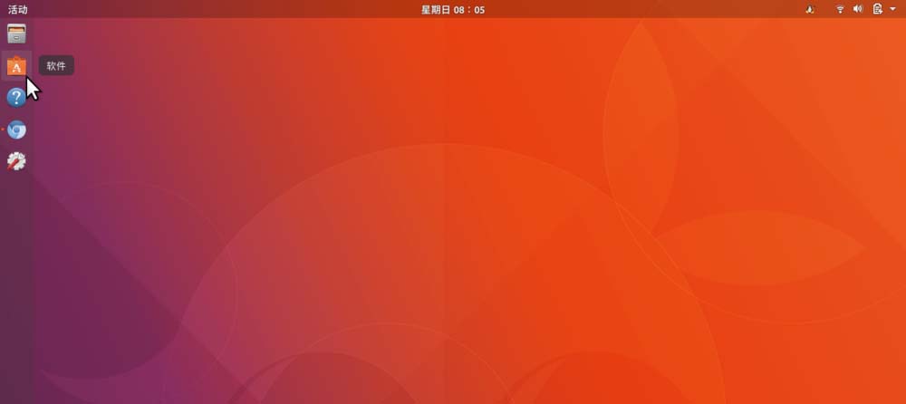 1、在桌面的Ubuntu Dock上,点击橙色购物袋图标的软件图标,启动软件窗口。