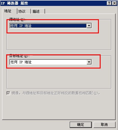 10 .点击上图中的“添加”弹出如下窗口:地址我们就都选“任何IP地址”