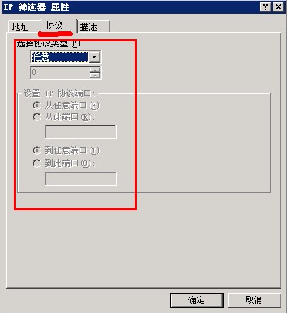 19. 设置完址后再设置协议。远程访问用的是3389端口,协议类型是TCP,就按照图中设置: