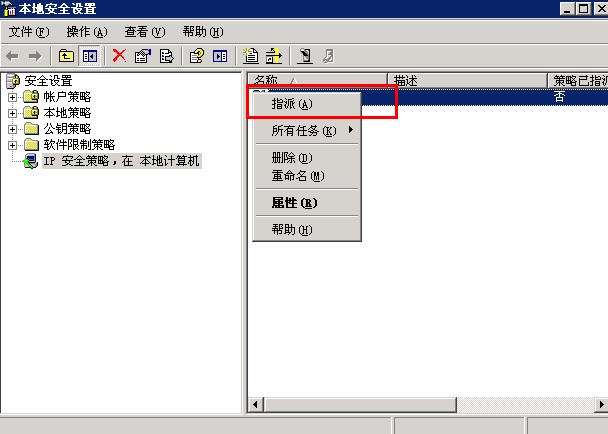 远程允许后最后再让策略生效:右击IP 安全策略,指派就可以了