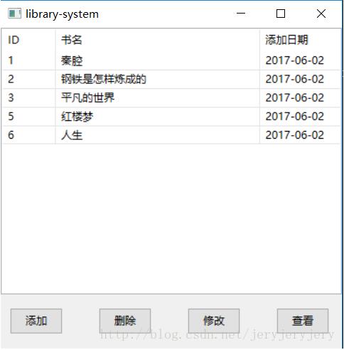 用wxpython实现的简单图书管理系统,可以实现增加图书,删除图书,修改图书,查看图书。后台数据库为mysql数据库,采用的pymysql连接数据库。系统界面如下: