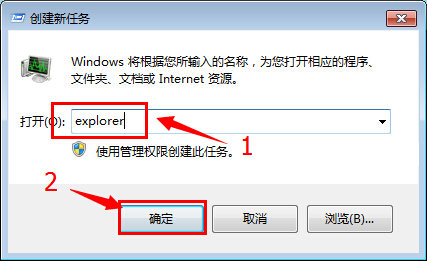 2、在随后的对话框中输入Explorer并回车,很快就可以看到我们熟悉的Windows又回来了!