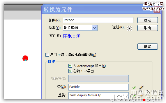 7、保存在fla文件的同一目录下,名为 " Particle " 。图3:
