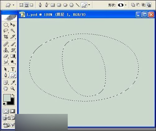 2.选择钢笔工具,选项同样为路径,将中间的小圆用路径圈起来,闭合路径后点右键,选"建立选区",在弹出的选项中选择"添加到选区",这样就得到完整的椭圆。选择前景色为暗绿色(R42/G75/B37),按Alt+Del填充。执行选择—储存选区,将这个椭圆选区储存到通道中。