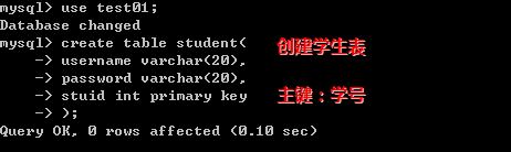 create table student(username varchar(20),password varchar(20),stuid int primary key);