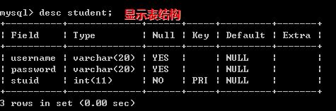 | stuid | int(11) | NO | PRI | NULL | |
