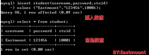 mysql> insert student(username, password, stuid)