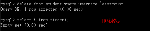 mysql> delete from student where username='eastmount';