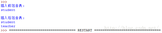 print u'\n插入后包含表:'