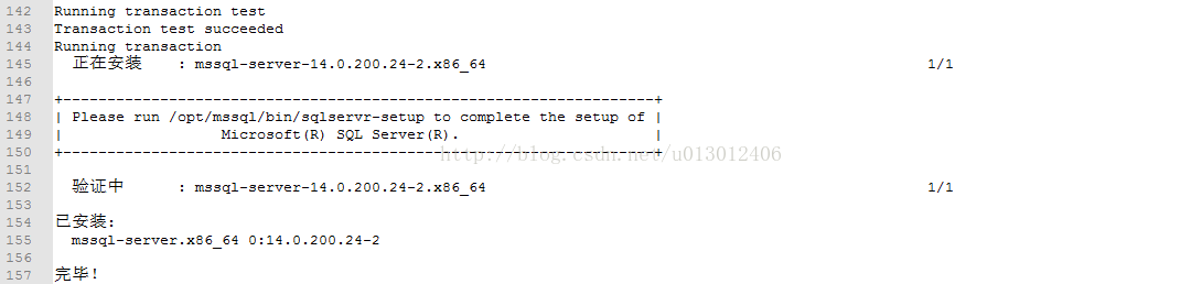 至此,SQL Server就已经安装好了!既然是安装在Linux系统上,那么肯定需要通过命令行的模式进行管理数据库,Oracle有sqlplus,SQL Server有sqlcmd,但需要另外安装。