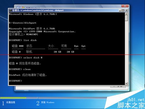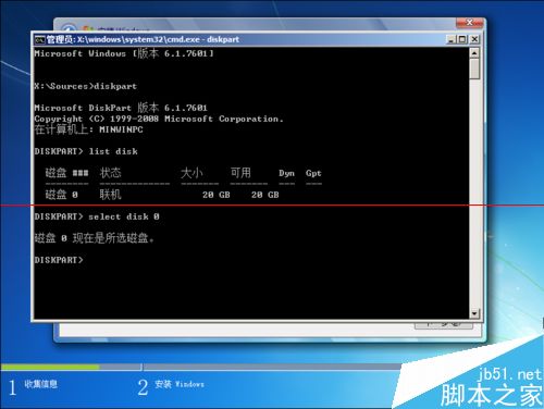 4、输入:select disk 0,回车,选择第0个磁盘(电脑的硬盘编号是从0开始的)