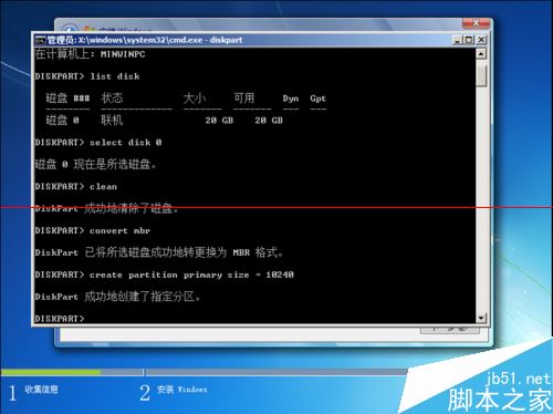 7、输入:create partition primary size = xxx,回车,创建主分区大小(MB)