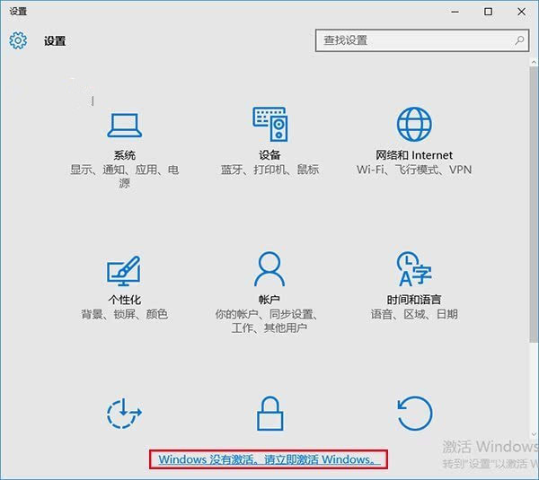 另外,在系统“设置”应用窗口下方也会显示激活提示链接,点击之后可直接进入“Windows激活”窗口。