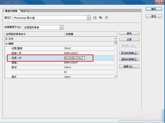 键盘快捷键--应用程序菜单--编辑--后退一步--改为其它的就行了--如下图所示