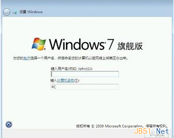 (11) 安装程序会更新注册表,并开始设置Windows,要求输入你的用户名和计算机名(如图6)所示: