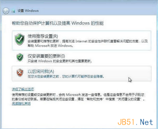 (13) 系统更新设置。选择默认的“使用推荐设置”,如图(8)所示: