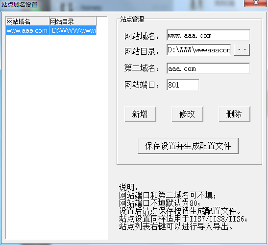 首先,打开站点域名管理,配置如下,网站域名和目录都可以自己设置,端口重设一个,不要是80了,然后先新增再保存。