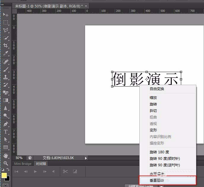 7、对着文字,单击鼠标右键,选择“垂直翻转”。