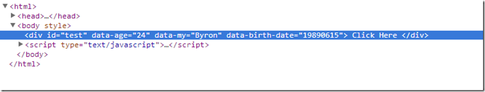 1. 我们在添加或读取属性的时候需要去掉前缀data-*,像上面的例子我们没有使用test.dataset.data-my = 'Byron';的形式。