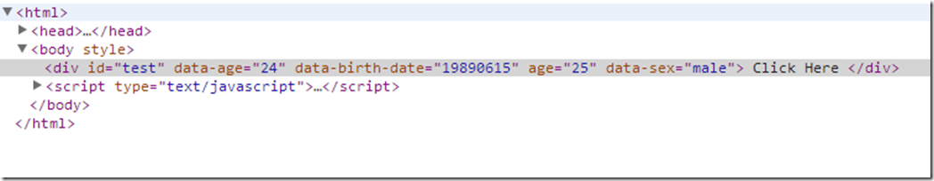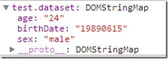 其中的data-age就是一种自定义属性,当然我们也可以通过JavaScript来对其进行操作,HTML5中元素都会有一个dataset的属性,这是一个DOMStringMap类型的键值对集合