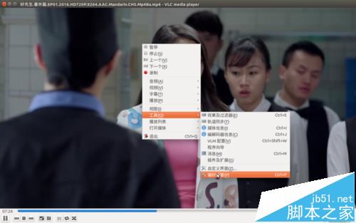 1、对着播放窗口右键,选择“工具”,“偏好设置”,然后弹出“简明偏好设置”窗口