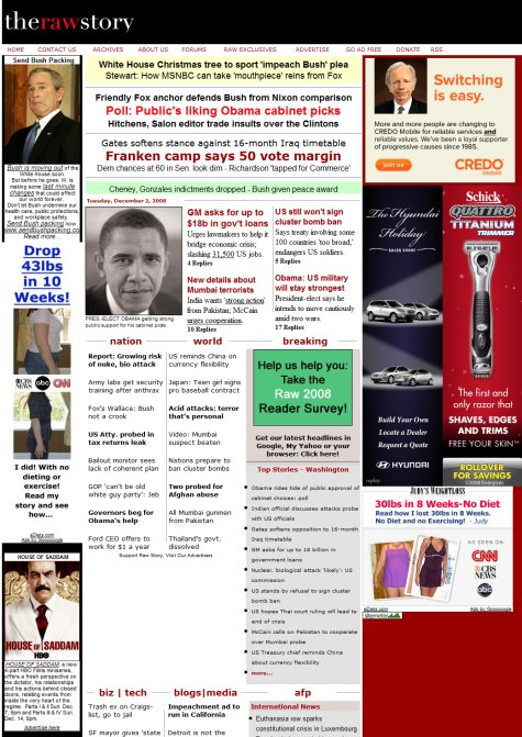The Raw Story看上去处处都有可能有广告挤进来,损害了内容的易阅读性。