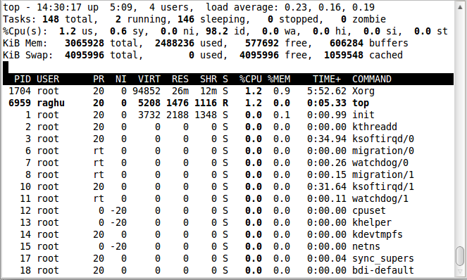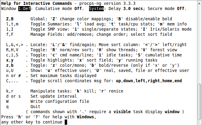 我们之前说过top是一个交互命令。上一节我们已经遇到了一些命令。这里我们会探索更多的命令。