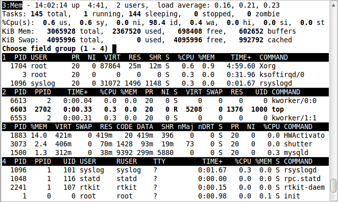 2.6 ‘l’、‘t’、‘m’: 切换负载、任务、内存信息的显示