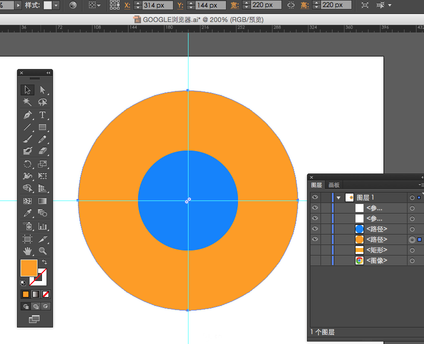 2、再绘制一个220*220像素的同心圆。