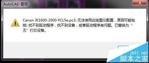 3、然后点击左上角的打印按钮,或者是利用快捷键CTRL+P出现打印的设置。通常CAD系统会提示原来的打印机型号是XXX,现在不太一致,要你核对。别理会,叉掉。