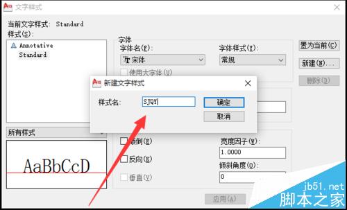 4、新建一个文字样式“SJQY”。