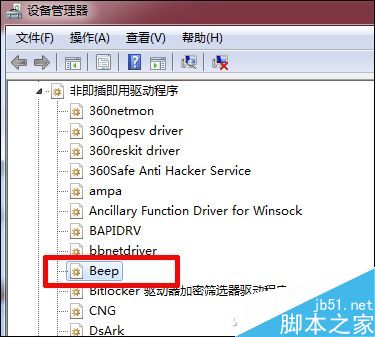 此时,你会发现设备列表中新增了一行“非即插即用驱动程序”,找到里面的“beep”。