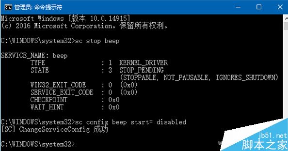 sc config beep start= disabled