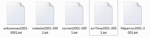 file1 = 'ruisi\\correct_re.txt' file2 = 'ruisi\\errTime_re.txt' file3 = 'ruisi\\notexist_re.txt' file4 = 'ruisi\\unkownsex_re.txt' file5 = 'ruisi\\httperror_re.txt'