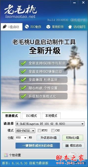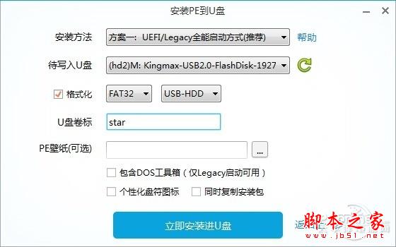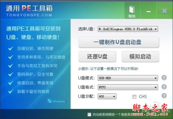 通用PE制作U盘PE系统同样简单,还是一键即可搞定,也支持多种启动模式选择,不支持个性化设置。