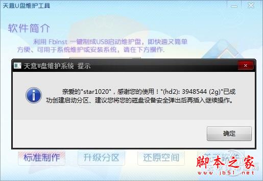 天意制作U盘系统也很简单,同样支持多种启动模式选择,但不支持个性化设置。是它的提示却有点问题,那就是在制作过程中提示“正在整理UD分区”,接着提示“已经成功创建启动分区,建议您将您的磁盘设备安全弹出后再插入继续操作。”