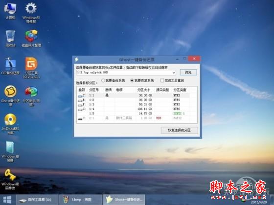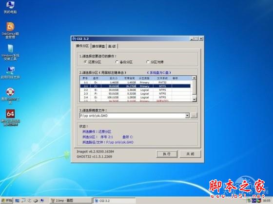 接下来我们进入本次测试的重头戏,一起来看看使用这些PE系统内置的傻瓜式GHOST工具来恢复事先制作好的纯净Windows XP GHOST备份文件,然后观察恢复后的Windows XP系统会有怎么样的情况发生。