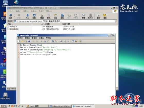 图27 老毛桃在开始菜单启动项添加的VBS文件及其内容