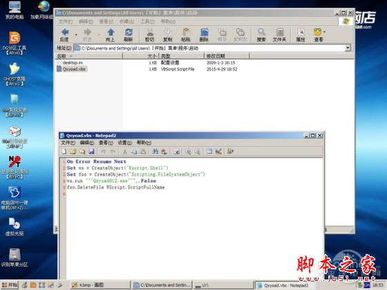 图30 电脑店在开始菜单启动项添加的VBS文件及其内容
