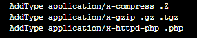 在 vi 编辑器中搜索“AddType application/x-compress .Z”