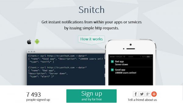 Snitch很直接的告诉潜在用户已经有7493个人注册使用了哦。