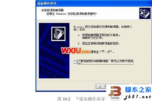 (5)当系统检测到调制解调器后,将自动打开“找到新的硬件向导”之一对话框,如图10.4 所示。
