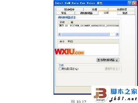 (9)在该选项卡中用户可查看该调制解调器的诊断信息。单击“查询调制解调器”按钮,可查看该调制解调器有反映的所有指令;单击“查看日志”按钮,可查看单击“查询调制解调器”按钮后的日志文件。 (10)选择“高级”选项卡,如图10.13 所示。
